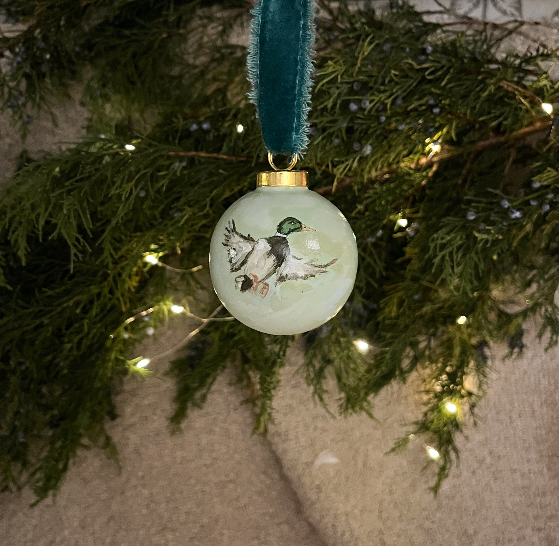 Hand-Painted Ceramic Duck 2 Christmas Ornament